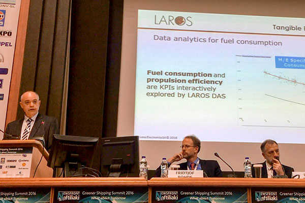 Η Πρίσμα Ηλεκτρονικά ΑΒΕΕ συμμετείχε στο Greener Shipping Summit 2016 “What about Tomorrow”, που διοργανώθηκε από τη NEWSFRONT Naftiliaki στις 15 Νοεμβρίου στο Ευγενίδειο Ίδρυμα, υπό την αιγίδα της MARTECMA. Οι συμμετέχοντες είχαν την δυνατότητα να γνωρίσουν την καινοτόμα λύση τηλεμετρίας LAROS, από τον κ. Γιώργο Χριστόπουλου, Διευθυντή των Ναυτιλιακών επιχειρήσεων LAROS, έναν από τους κύριους ομιλητές του συνεδρίου.